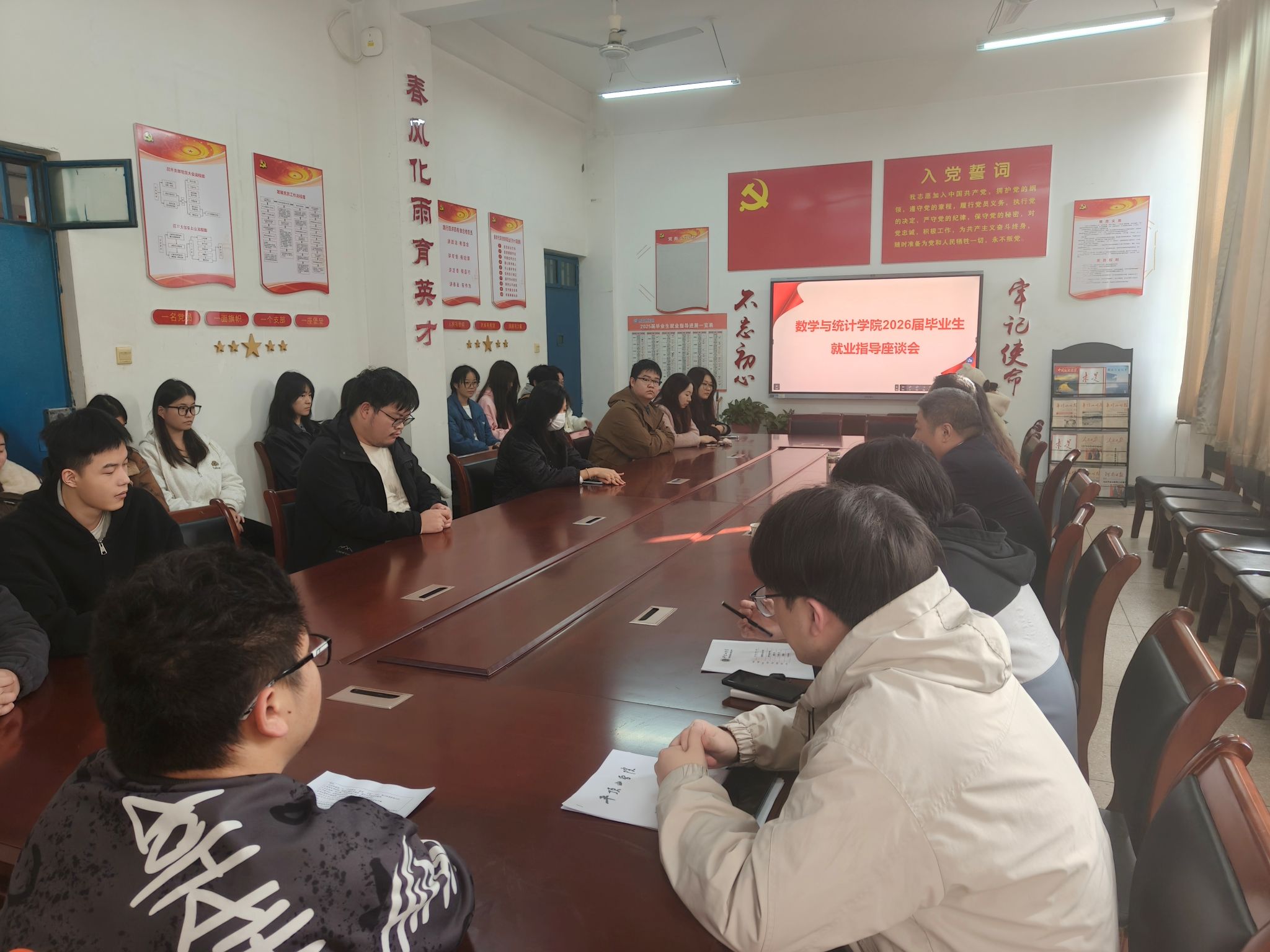 为切实做好2026届毕业生就业指导工作,帮助金融工程专业毕业生明确就业方向、提升就业竞争力,10月27日下午,数学与统计学院组织开展2026届金融工程专业毕业生就业指导讲座。学院党委书记张建林担任主讲人,金融工程教研室主任王东民教授受邀参加,毕业班辅导员耿梦媛主持讲座,2026届金融工程专业毕业生到场聆听。