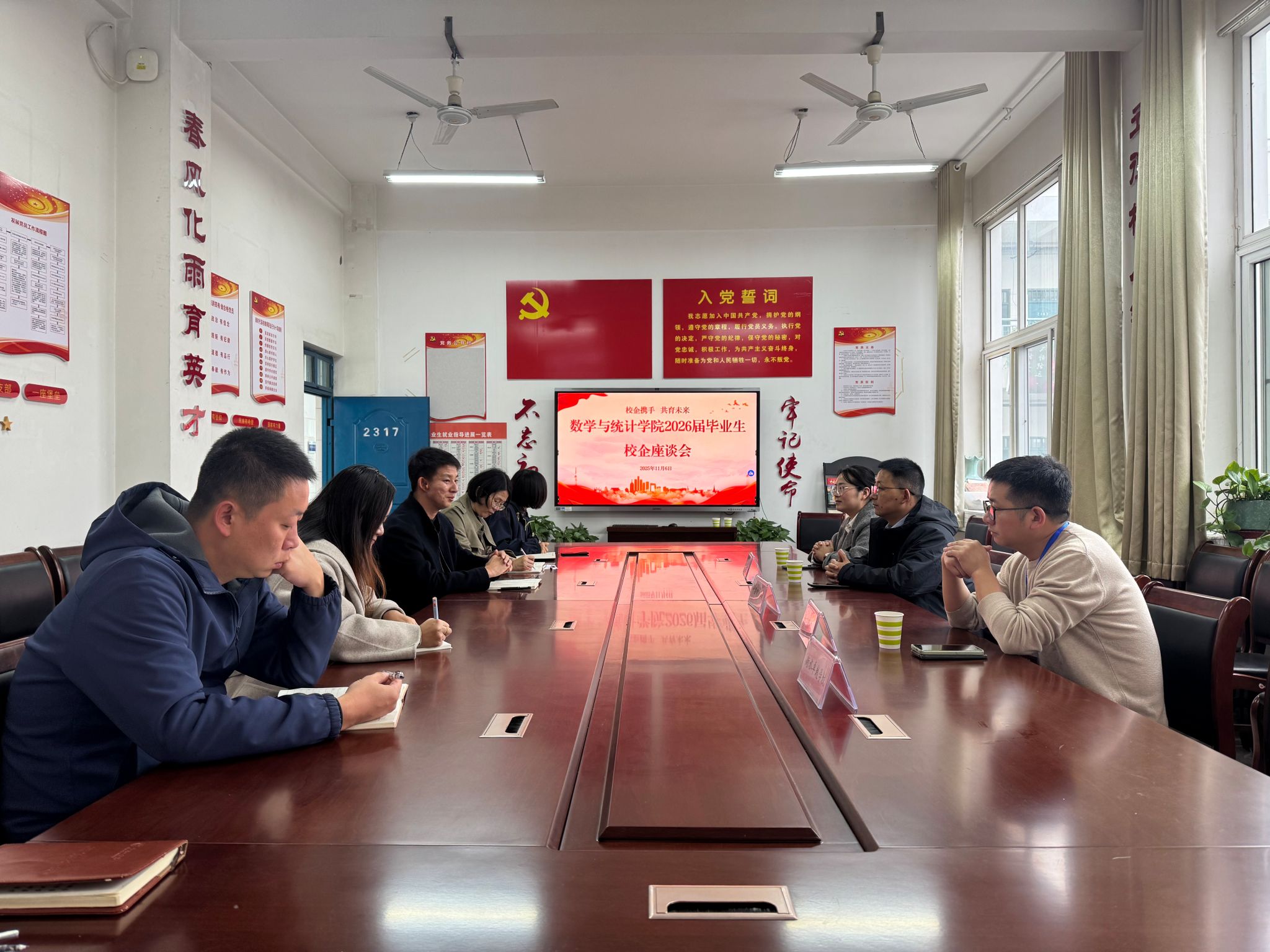 为深化校企合作,搭建人才培养与就业桥梁,2025年11月6日上午,数学与统计学院在2317会议室召开校企座谈交流会。长江证券平顶山营业部、周口新星学校、叶县明阳学校、衡水卓越学校等多家用人单位代表受邀参加,学院党委副书记孙亚南主持会议,教科办主任郭丽娟、实践教育教研室主任罗娟、学工办主任李睿智及辅导员耿梦媛、郑梦园一同参会。