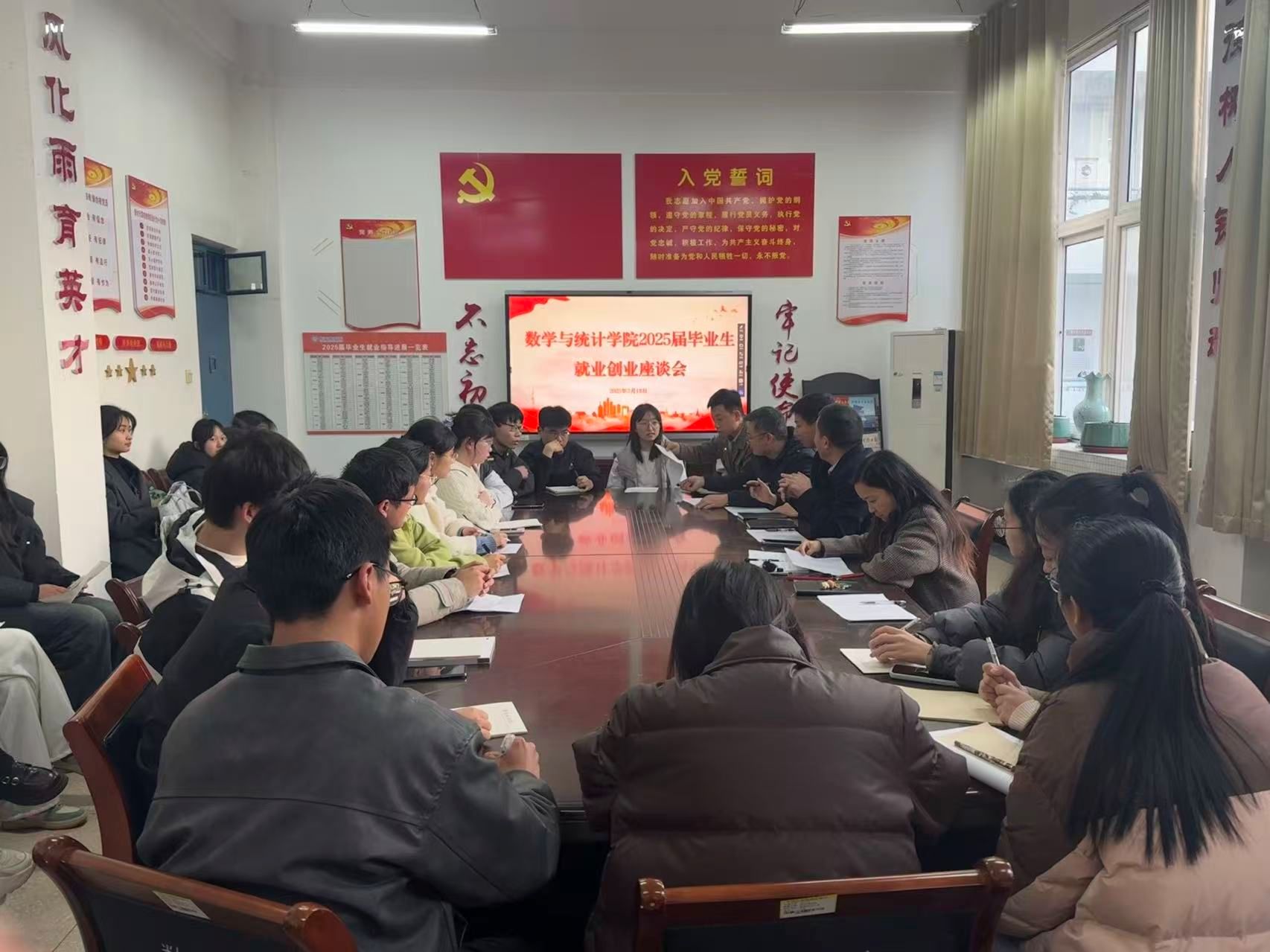 为深入推进2025届毕业生就业创业工作,引导毕业生树立正确的就业观与创业意识,充分发挥学生骨干在就业创业过程中的示范引领作用,3月18日,数学与统计学院组织召开2025届毕业生就业创业座谈会。学院党委书记张建林、院长王俊俊、党委副书记孙亚南、毕业班辅导员崔欧阳、郑梦园以及2025届全体学生党员和部分毕业生代表参加了会议。座谈会由孙亚南主持。