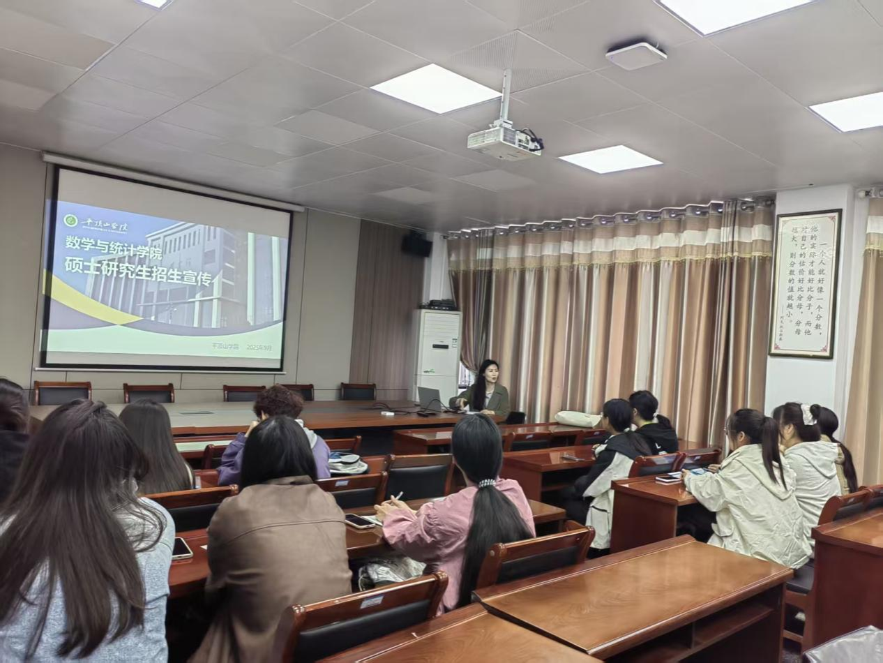 数学与统计学院高度重视研究生招生宣传工作,学院将持续开展系列招宣工作,将招宣工作常态化,鼓励导师、学生、优秀校友加入到招宣队伍中,采用丰富多样的招宣途径,深化研究生招生宣传,努力提高研究生招生质量,助力学科发展建设,真正做到招生工作“走”出去,优质生源“涌”进来。