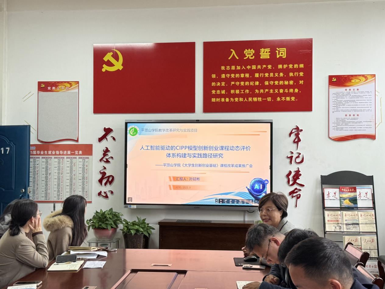 10月9日,创新创业学院孙延彬、王晓静老师立项的“2025年人工智能校级教学改革研究与实践专项”成果推广会在数学与统计学院2317会议室进行,学院全体教师参加。