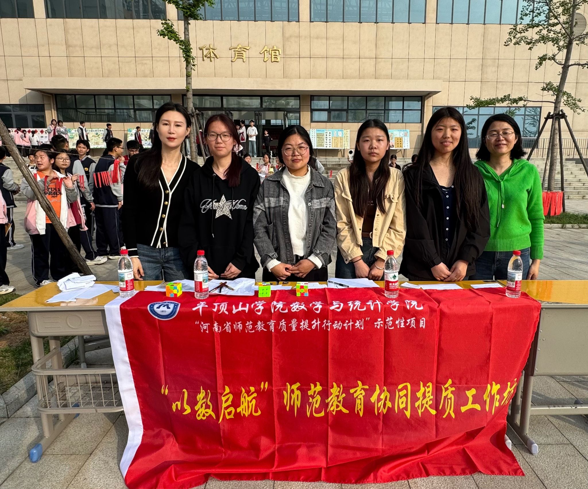 为加强高校与中学数学教育衔接,激发中学生数学探究热情,提升工作坊学员的实践能力,2026年4月14日,“以数启航”师范教育协同提质工作坊学员在班主任罗娟、牛青老师的带领下受邀参加平顶山市第一高级中学科学文化节。